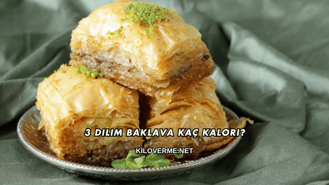 Üç dilim klasik fıstıklı baklava ortalama 270–330 kalori içerir ve bu miktar kullanılan malzeme ve dilim boyutuna göre değişebilir. Şerbetin yoğunluğu, tereyağı miktarı ve fıstık oranı kalori hesabını doğrudan etkiler. Kalori hesabı yapılırken her dilimin yaklaşık 90–110 kalori olduğu bilinmelidir.